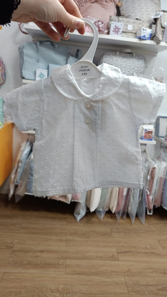 Camisa de plumeti con cuellos redondos y dos palas decorativas en el frente
