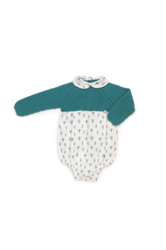 Pelele cuerpo de punto, cuellos redondos de telas, parte de abajo tela de arbolitos