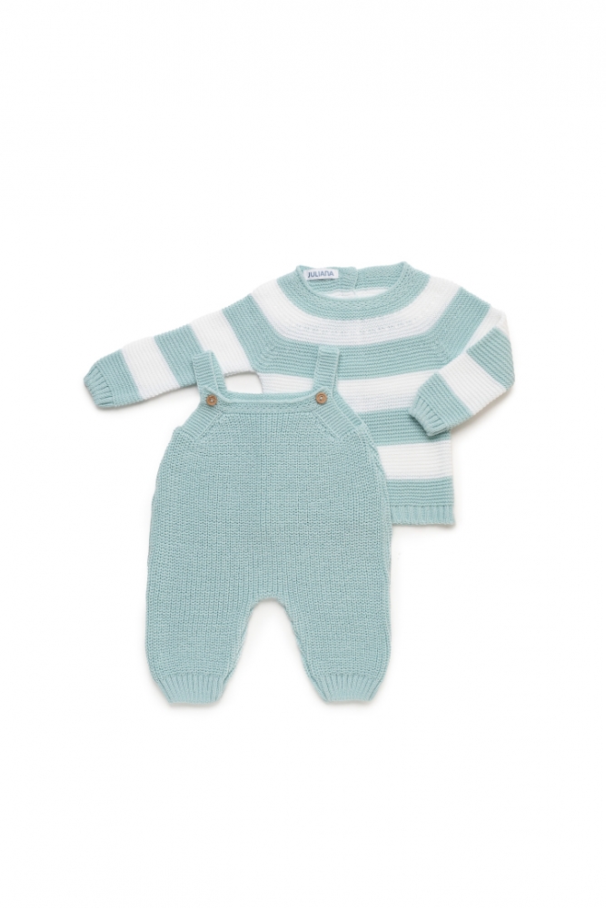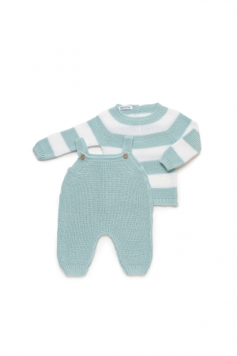 Peto de punto verde agua con jersey de rayas verde y blanco