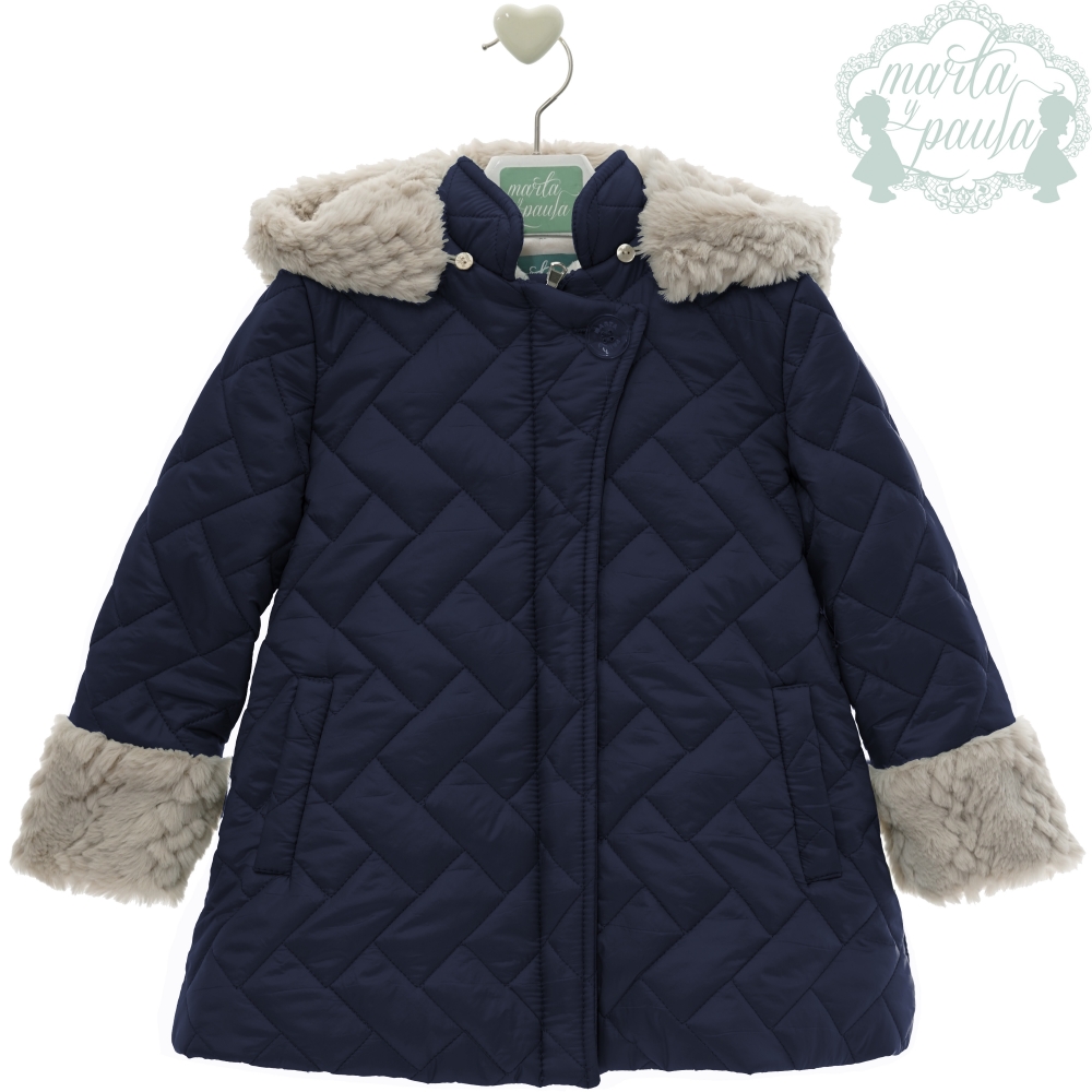 Abrigo con capucha , forrado y acolchado con vuelta en el puño de pelo