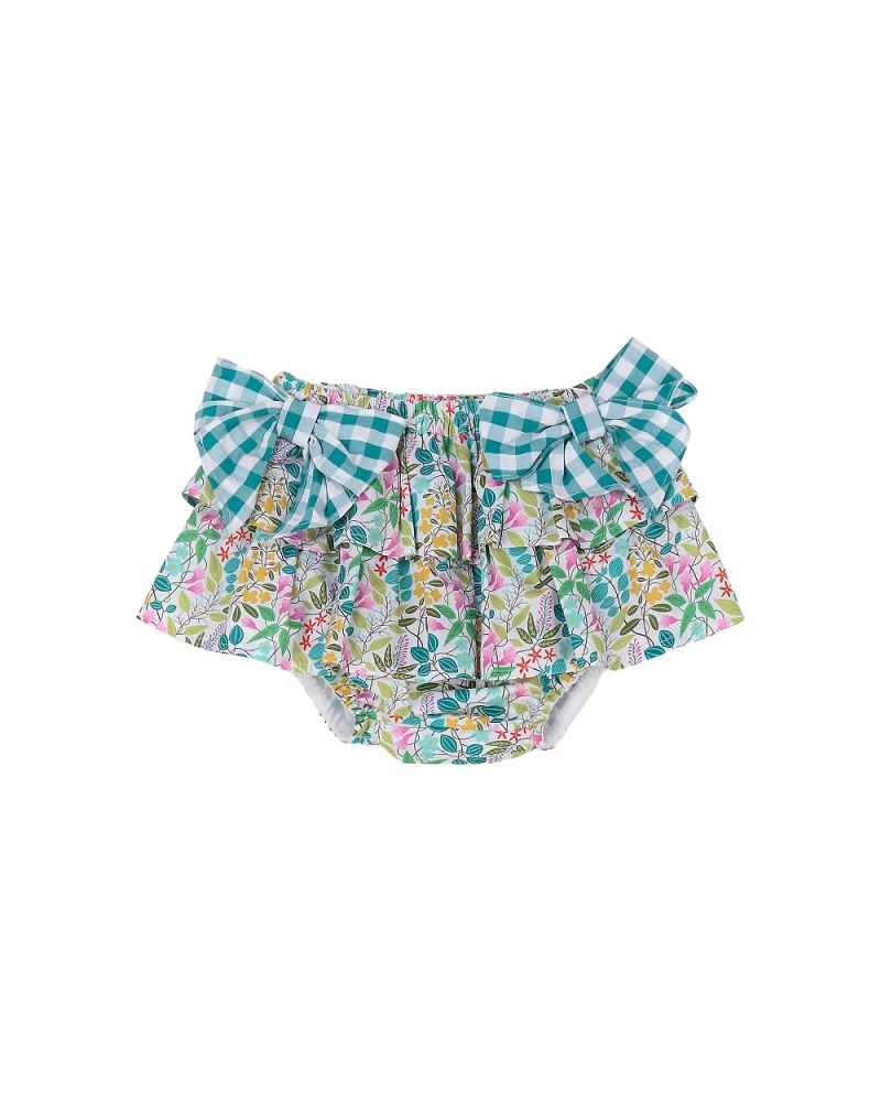 Ranita con flores y doble volante y dos lazos grandes de cuadros decorativos