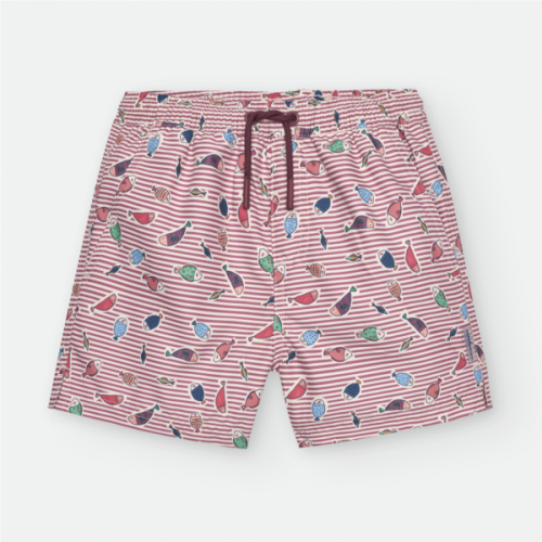 BAÑADOR CON CINTURILLA ELÁSTICA, CORDONES AJUSTABLES, BOLSILLOS LATERALES EN DELANTERO Y BOLSILLO TRASERO CON CIERRE DE VELCRO. ESTAMPADO DE PECES CON FONDO COLOR CRUDO.»