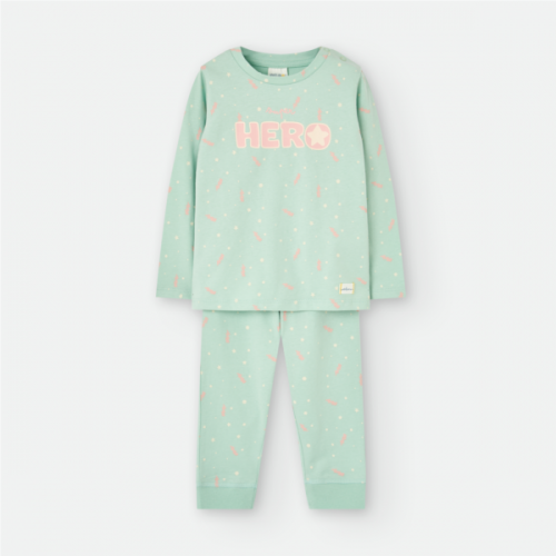 Pijama niña dos piezas con gatito en la camiseta y en pantalón