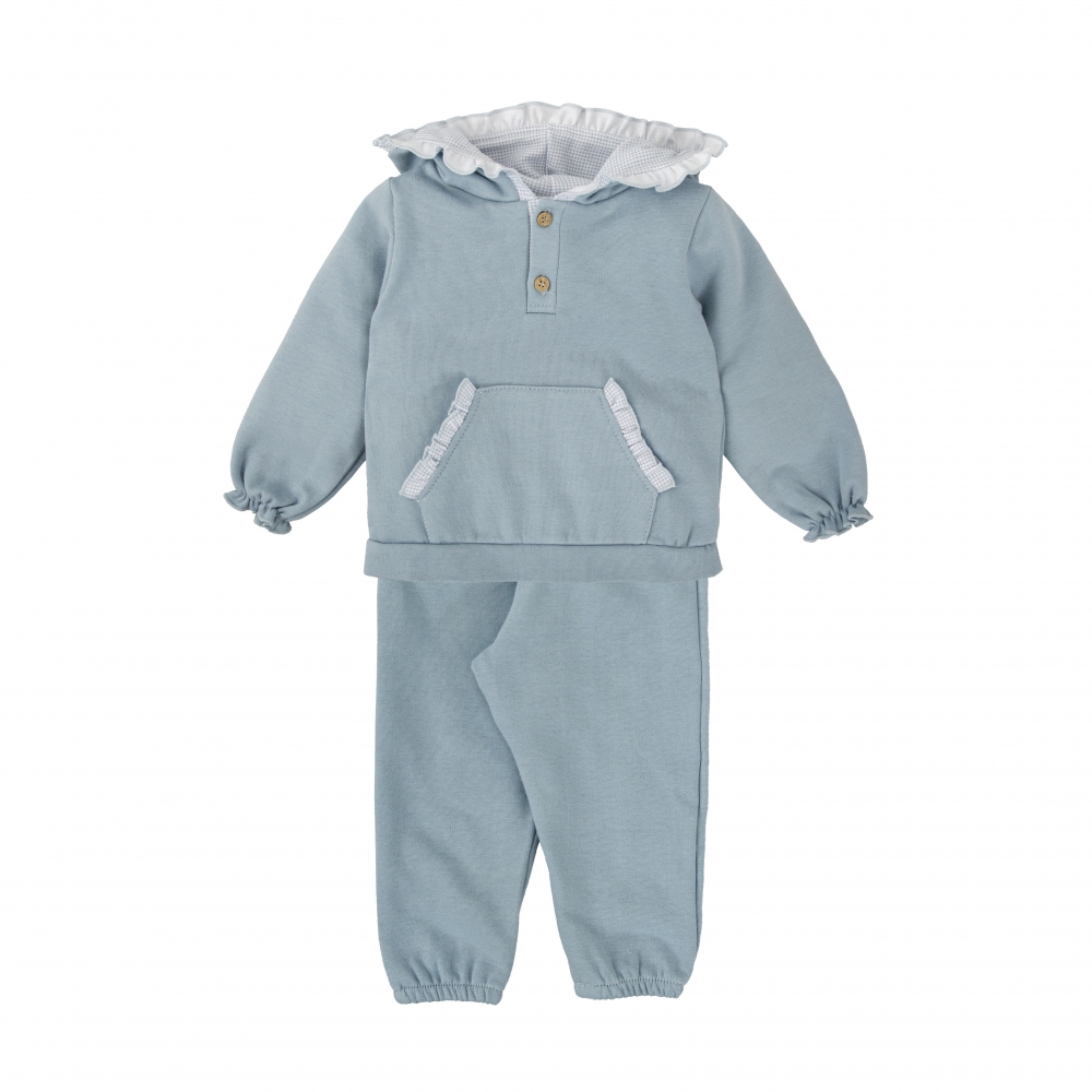 Jersey con bolsillo canguro y capucha con volante y forrada de cuadros, pantalón a juego