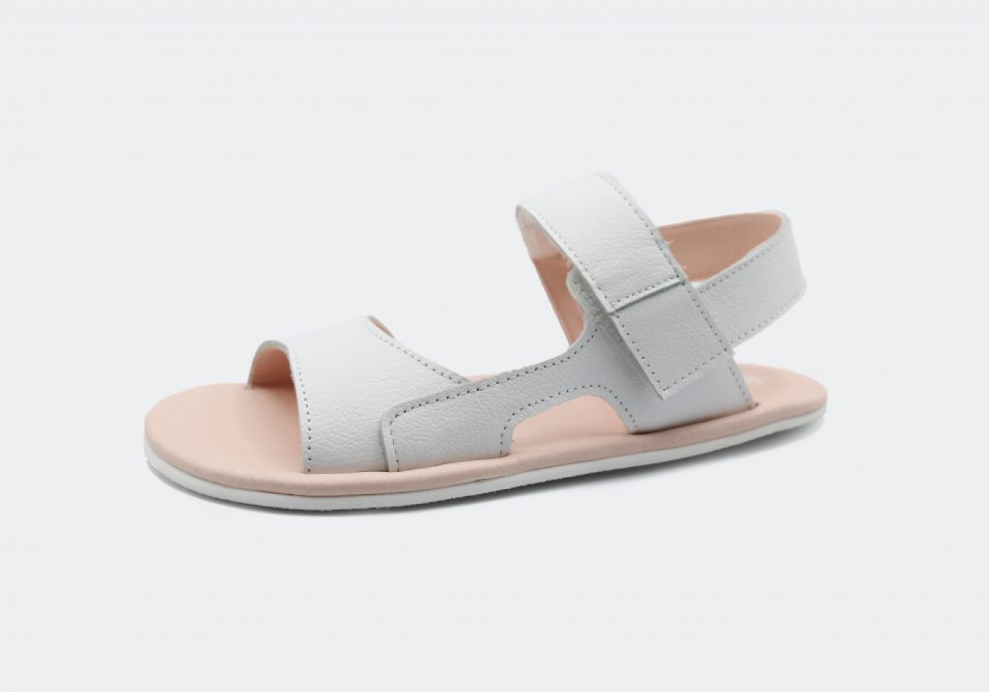 Sandalia blanca con velcro respetuosa con el pie de la niña, de piel
