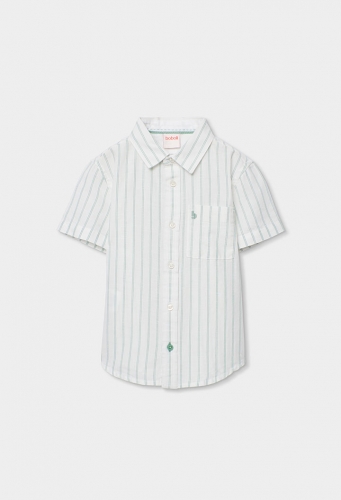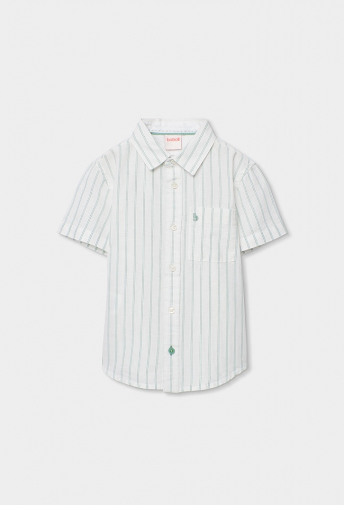 Camisa de niño de lino rayas verdes