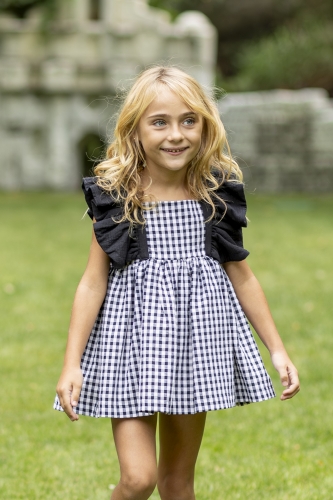 Jesusito de  cuadros vichy negro, volante grande en el hombro, braga negra