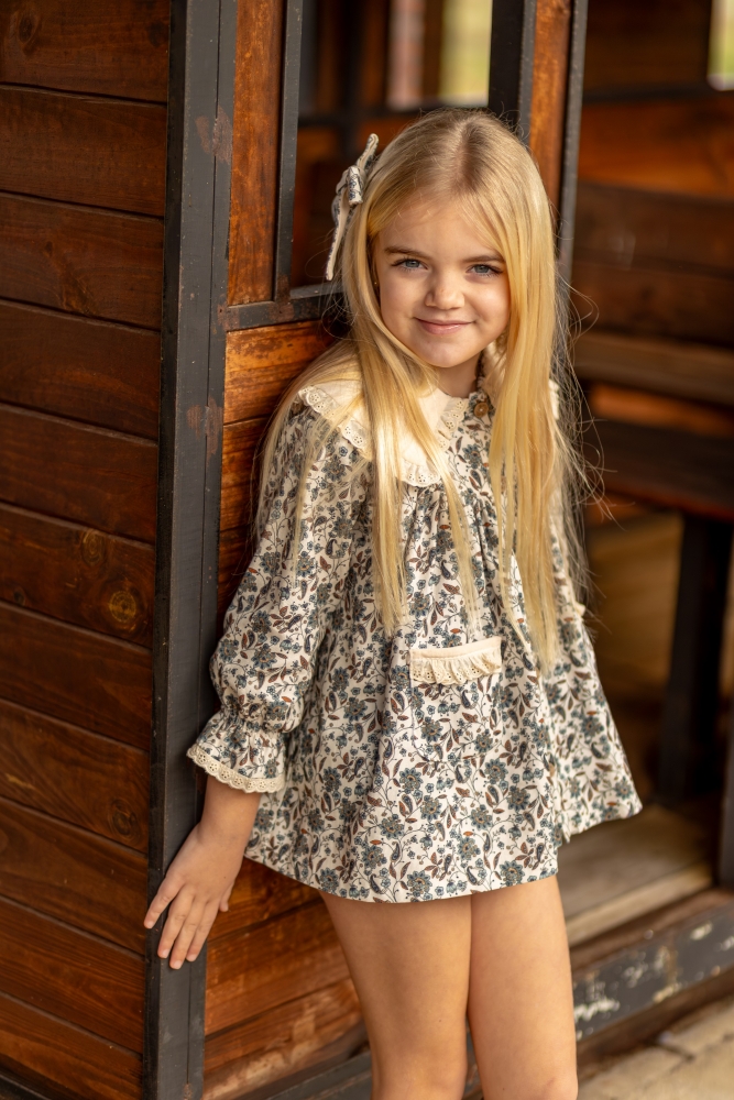 Jesusito de flores con cuellos grandes de micropana y puntilla,botones de madera ,braguita a juego