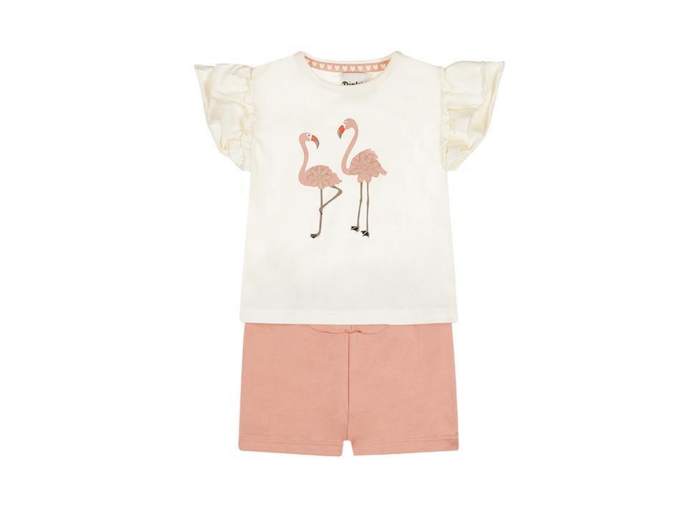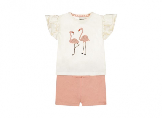 Conjunto de camiseta con flamenco y volante en manga, pantalón corto a juego