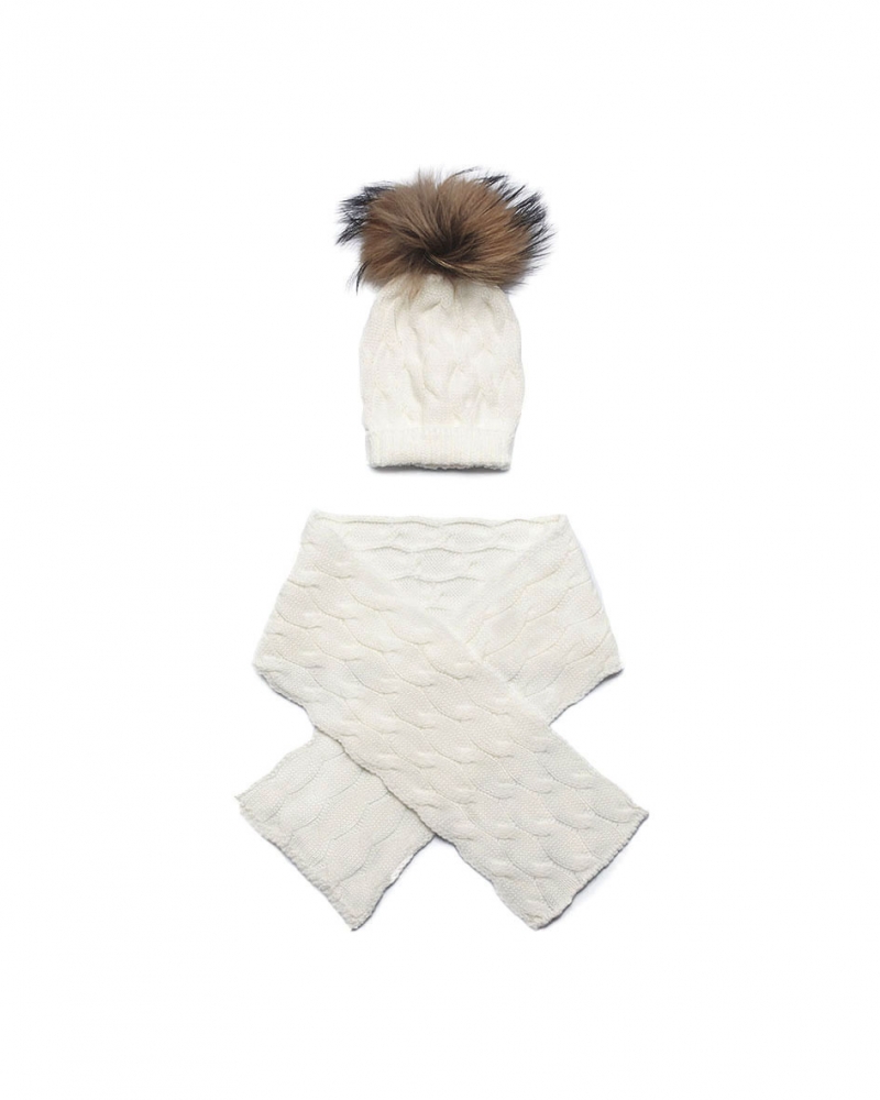 Gorro y bufanda de ochos con pompón de pelo natural