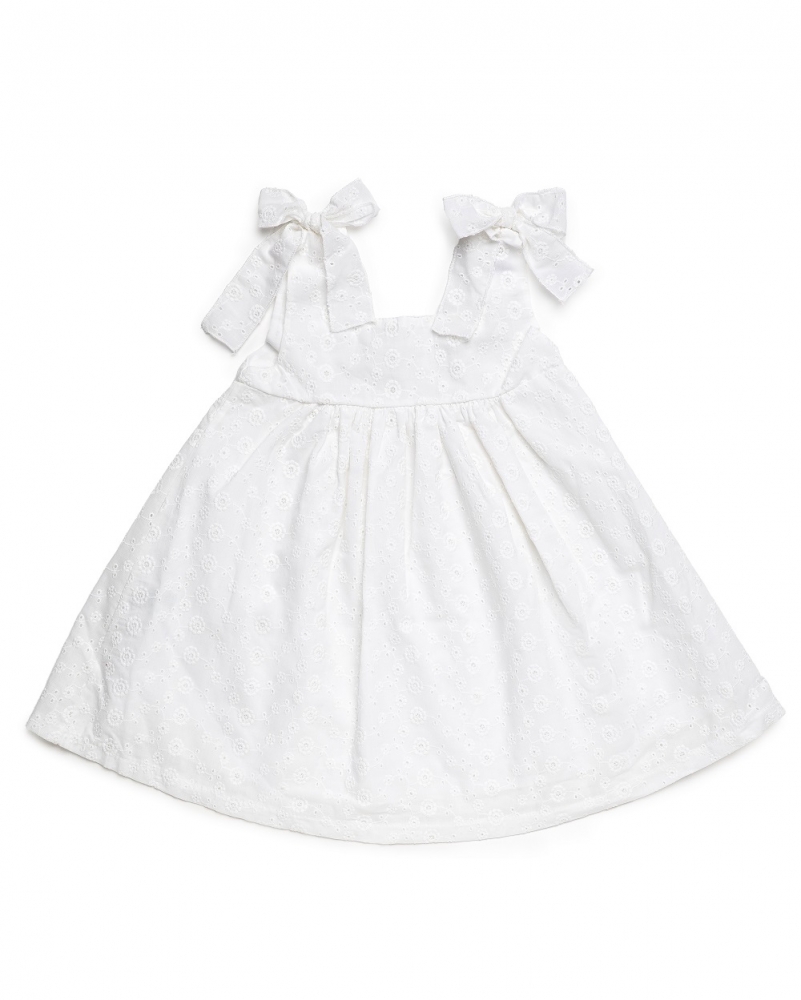 Vestido lazos blanco , tela bordada , lazos en los hombros, corte canesú