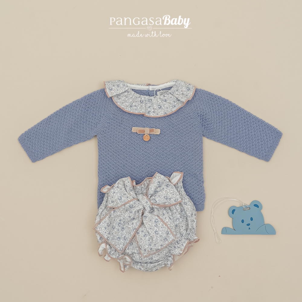 Jersey de punto con volante en el cuello de tela de flores, braguita de tela de flores con lazada grande decorativa