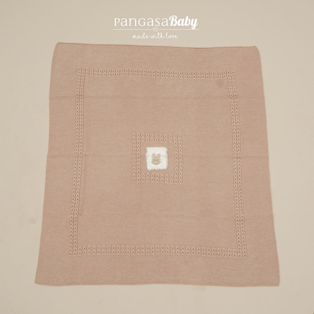 Mantita de punto con ochos y bolsillo con conejito decorativo