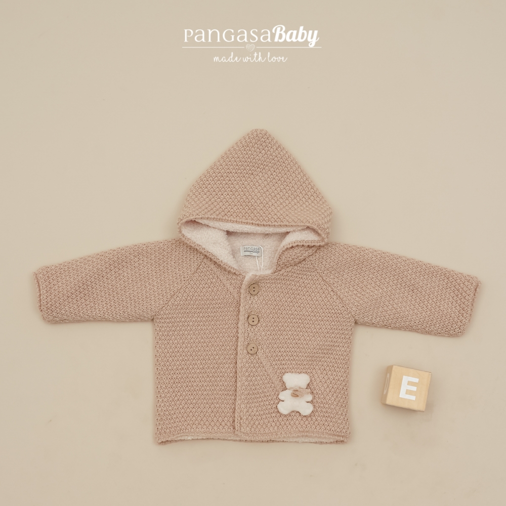 Trenka de punto con bolsillo y osito decorativo, capucha y forro de borreguito rizado