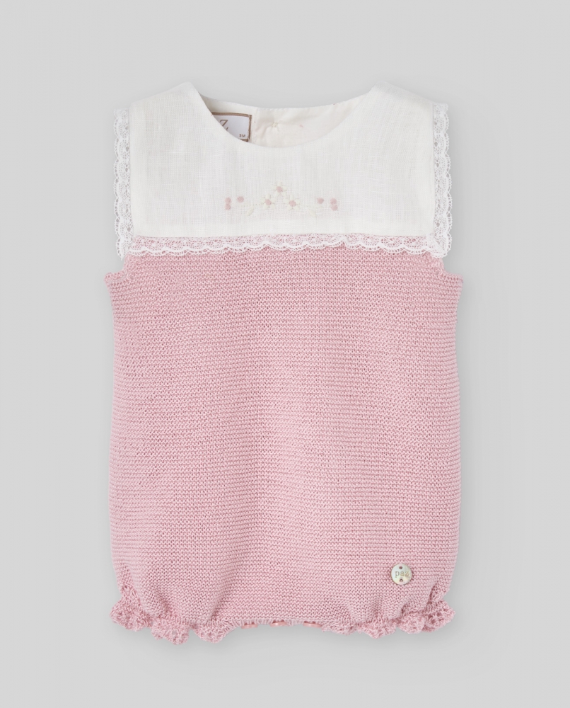 Ranita punto Alegra  rosa tiza con canesú de tela bordado y cuerpo de punto