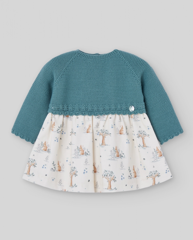 Vestido parte de arriba en punto, parte de abajo en tela con conejitos