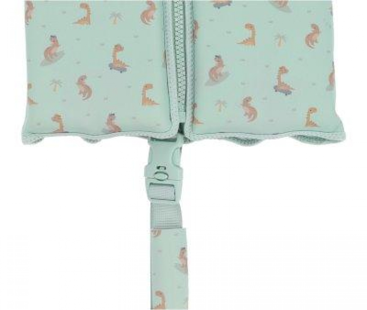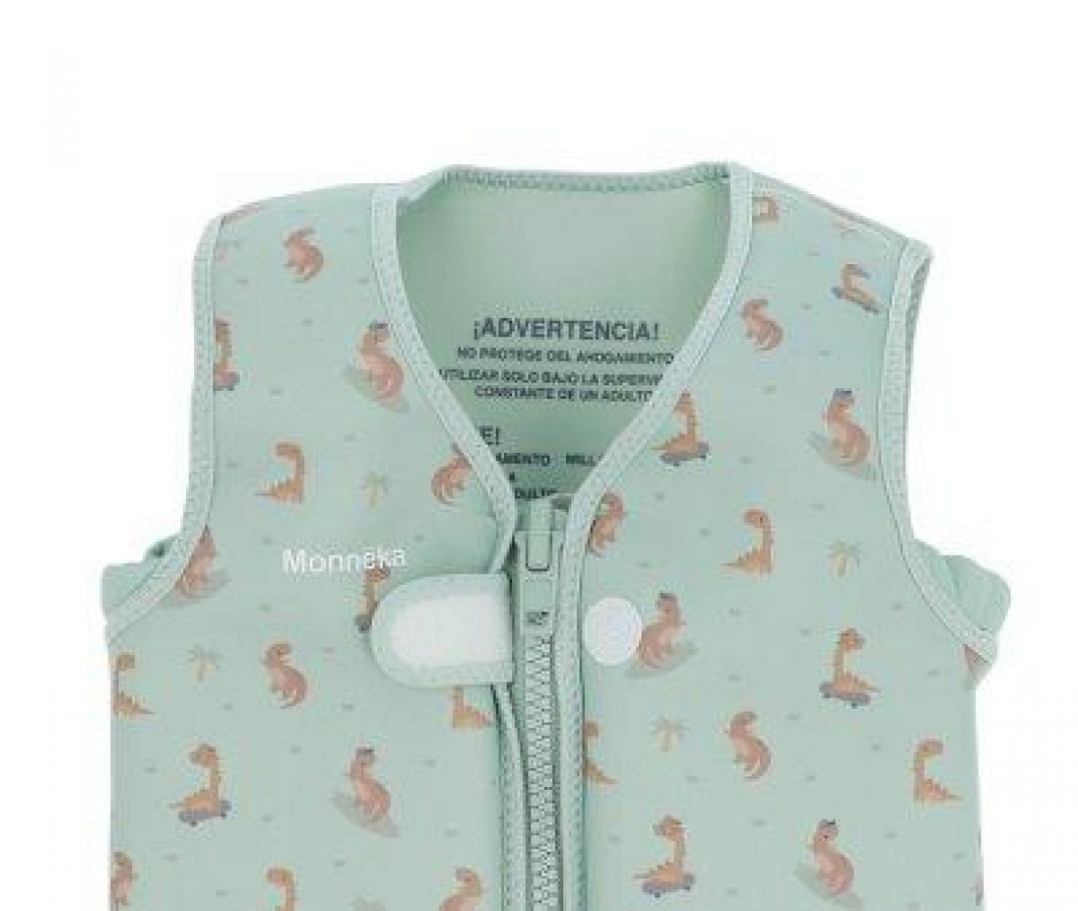 Descubre el adorable chaleco flotador de la colección Cool Dinos que cuenta con una cinta con cierre de seguridad para colocar entre las piernas con el fin de que el chaleco no se salga por la cabeza, en caso de tirarse al agua de manera vertical o cuando, simplemente, está flotando en el agua.Además está protegida con neopreno para evitar rozaduras entre las piernas.