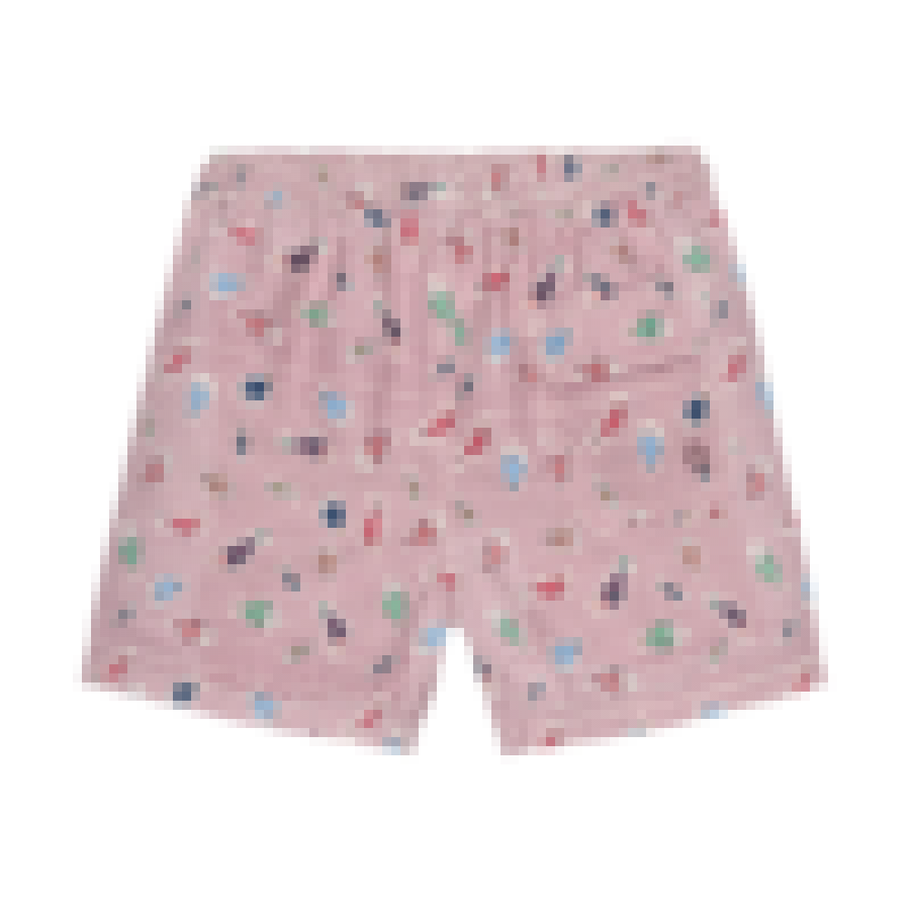 BAÑADOR CON CINTURILLA ELÁSTICA, CORDONES AJUSTABLES, BOLSILLOS LATERALES EN DELANTERO Y BOLSILLO TRASERO CON CIERRE DE VELCRO. ESTAMPADO DE PECES CON FONDO COLOR CRUDO.»
