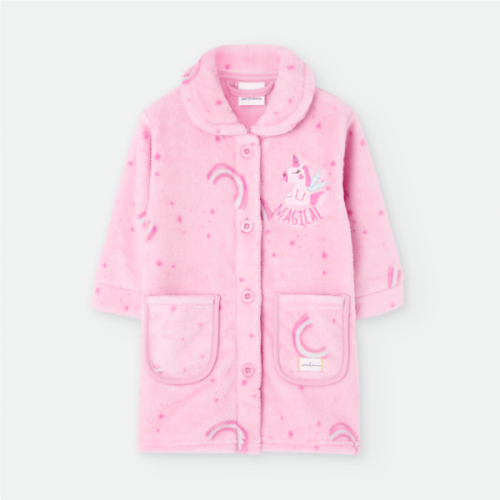 Bata unicornio rosa con botones y bolsillos en la parte delantera