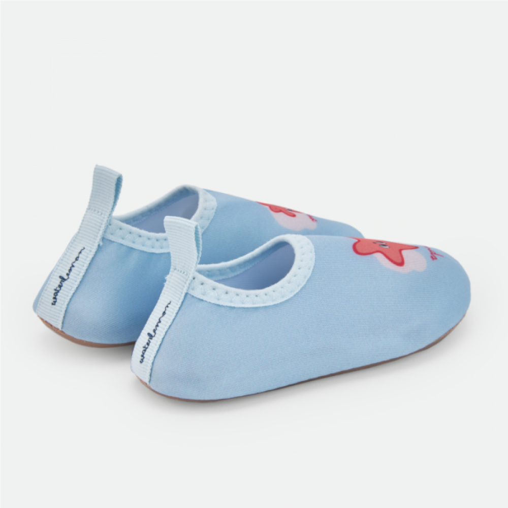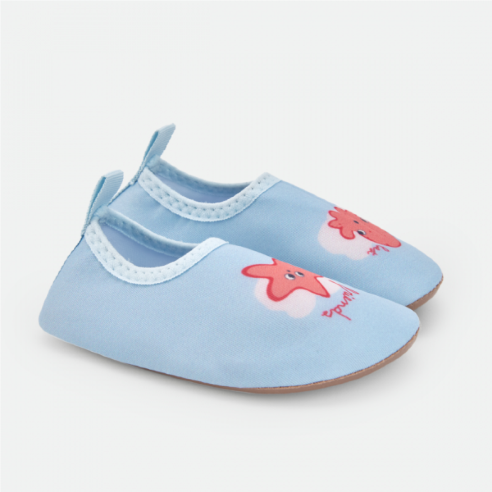 Escarpines celestes con dibujo de pulpo y estrella de mar, muy cómodos para los peques adaptándose muy bien al pie.