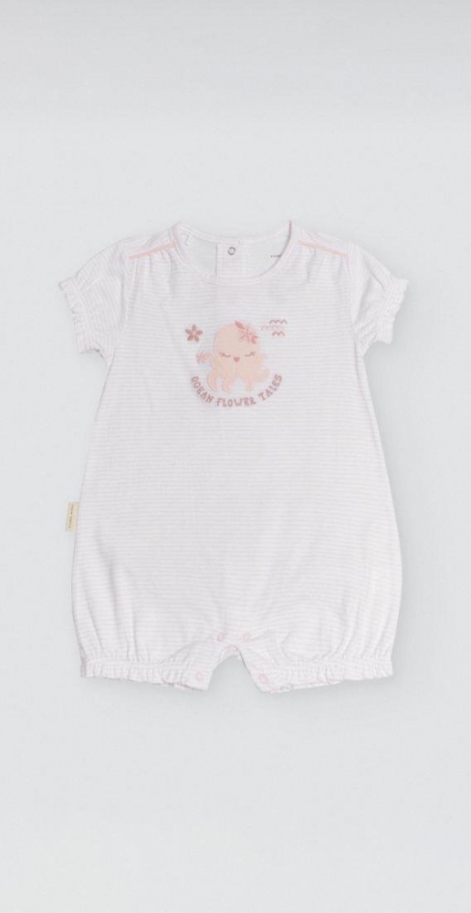 Pelele de manga corta con volantito, de rayas y pulpo y letras bordadas